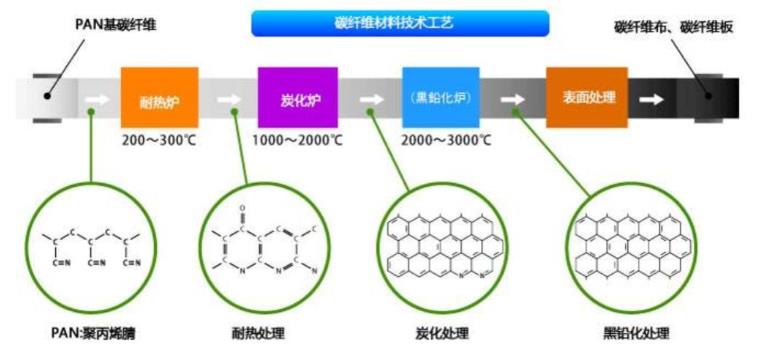 碳纖維是由粘膠、腈綸、芳綸、聚酰亞胺等纖維在超過(guò)1000攝氏度的高溫下燒制去除碳以外的絕大多數(shù)元素,是一種含碳量90%以上的無(wú)機(jī)高分子纖維。其力學(xué)性能優(yōu)異,輕于鋁,強(qiáng)于鐵,且具有高彈性模量、耐高低溫、耐腐蝕、耐疲勞等優(yōu)異特性,是一種集結(jié)構(gòu)材料與功能材料與一身,擁有廣泛應(yīng)用前景的基礎(chǔ)性新材料,被譽(yù)為21世界材料之王。